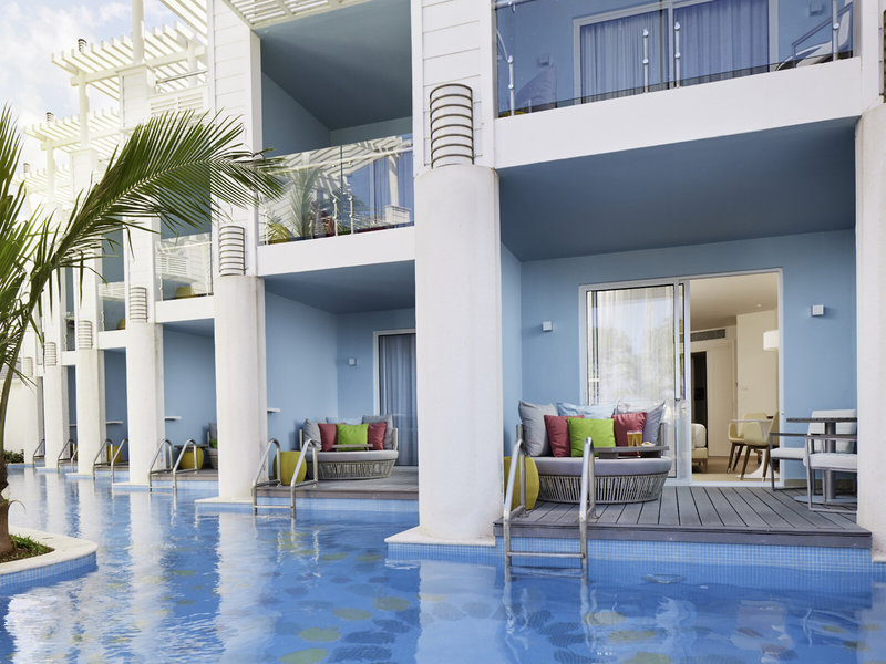 - Premium Swim up couple suita: 36-40 m2. Idealen prostor za pare nudi spalnico z veliko zakonsko posteljo, bivalni del s sedežno garnituro. Kopalnica, tuš kabina, dvojni umivalnik, WC, sušilec za lase, mini bar, sef, telefon, TV, WiFi, minibar, likalna deska, likalnik, kava/čaj, terasa s sedežo garnituro s pogledom na karibsko morje in direktnim dostopom do bazena.