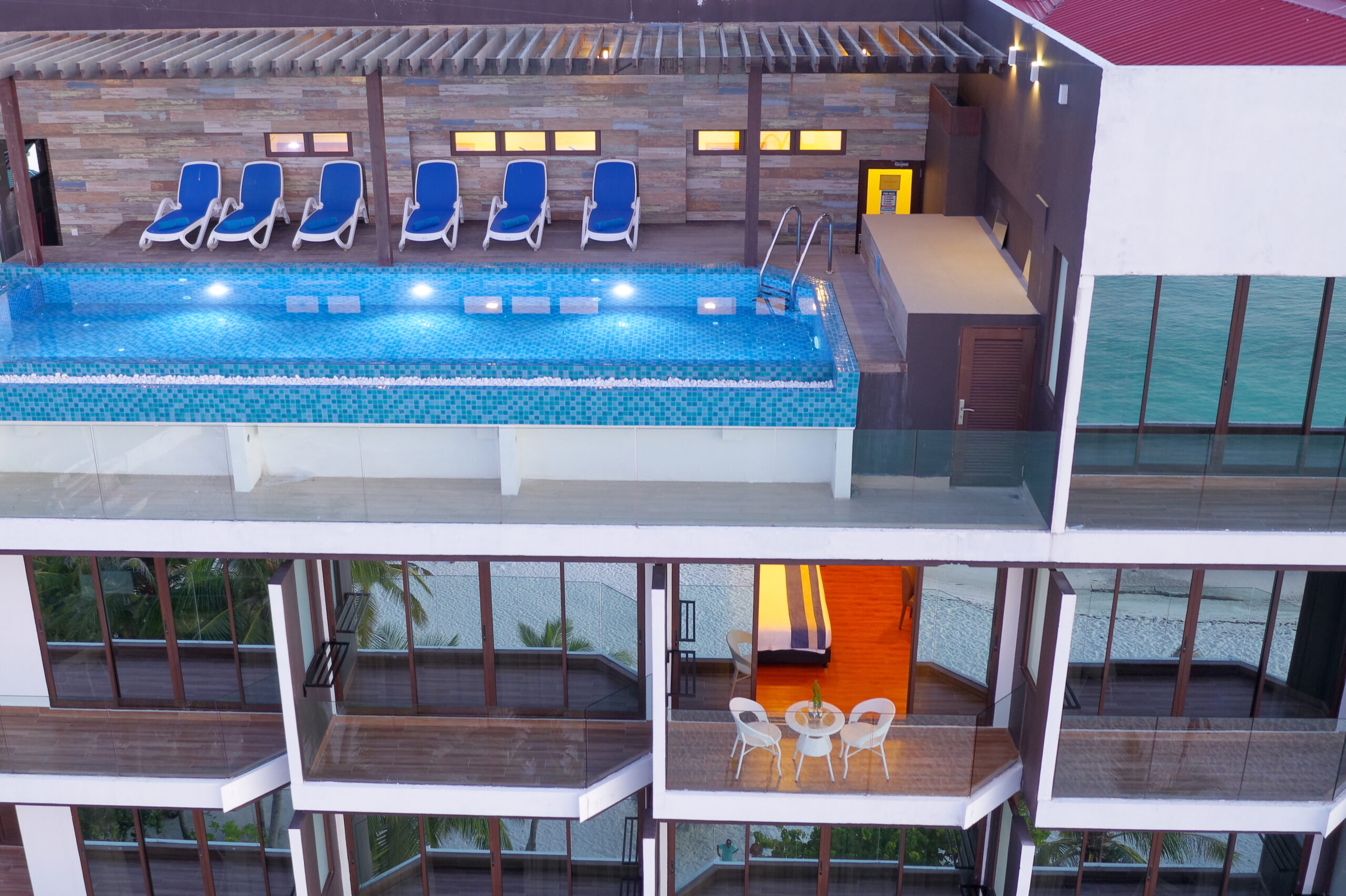 Manjši luksuzni hotel se ponaša z nepozabnim razgledom na turkizno laguno in lokacijo tik ob plaži. Stopite na plažo in uživajte v nežnem občutku belega peska med prsti s pogledom na turkizno morje in kokosove palme zibajoče v rahlem vetriču.