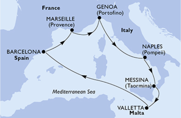 Neapelj, Messina, Valletta, Barcelona, Marseille
