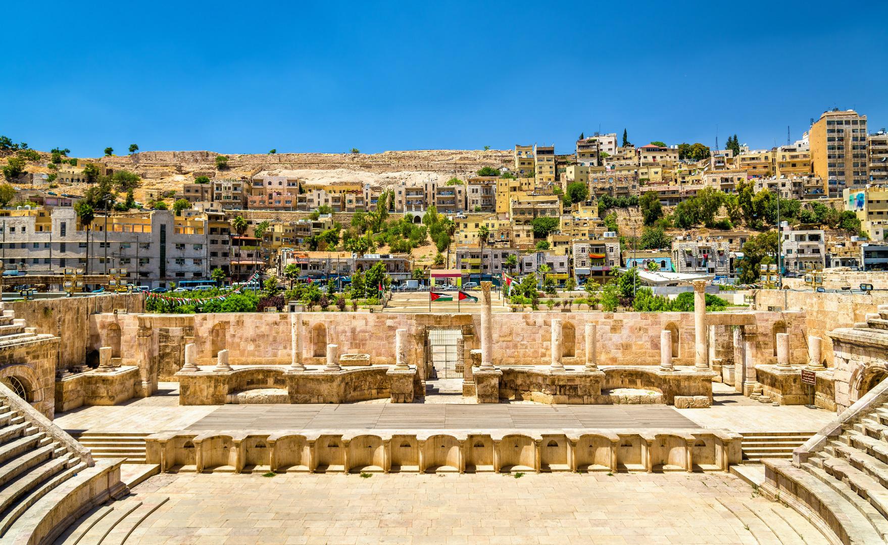 Polet proti Ammanu v jutranjih urah in prihod v Amman dopoldne. Obisk jordanske prestolnice. Vozimo se skozi moderne četrti belega mesta, obiščemo mestno citadelo s čudovitim pogledom na staro mestno jedro. V starem jedru se skupaj izgubimo v ozkih uličicah in vsrkavamo levantinsko vzdušje. Vožnja v hotel. Večerja in nočitev.